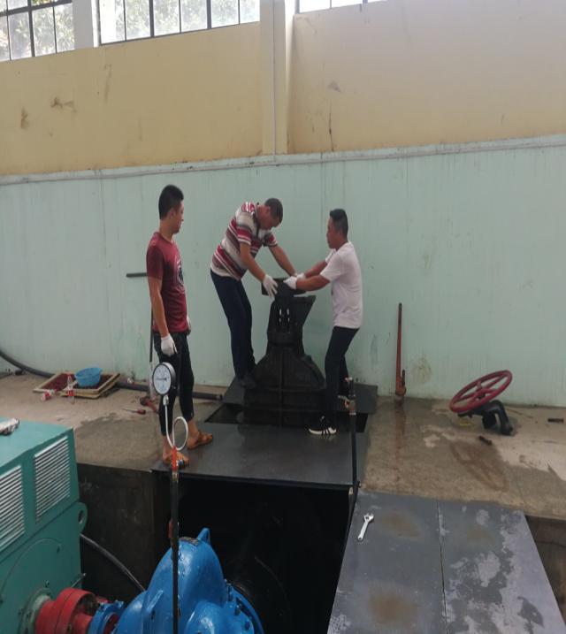 即便時至夜晚,泵房的溫度也讓人感到悶熱難耐,大汗淋漓,但維修師傅們?nèi)徊活欉@些,聚精會神地專注于手上的工作,齊心協(xié)力,連續(xù)奮戰(zhàn),終于在第二天凌晨三點左右維修完畢。待一切設(shè)備正常運(yùn)行后,已是凌晨5點了,天已蒙蒙亮,但大家并不感到疲憊,而是有一種搶修勝利后的喜悅從心底油然而生,因為大家的努力付出,確保了襄城居民的正常用水,辛苦也值了!